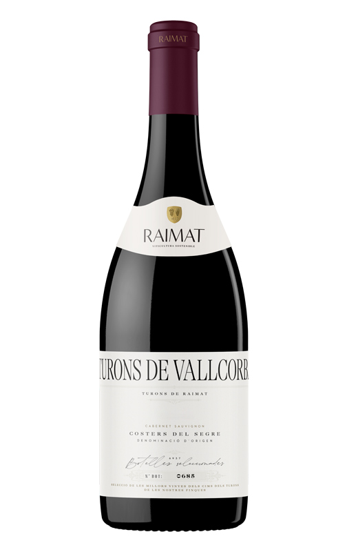 Turons de Raimat es la expresión de terruños concretos de las fincas de la bodega con características singulares. Son pequeñas producciones de vinos de alta calidad con personalidad propia. Rincones escogidos de las mejores viñas dispuestos en las faldas de las colinas de Raimat. La intervención humana es mínima: el viñedo se expresa tal como es. Sólo se actúa cuando es estrictamente necesario. Las podas y las esperguras son mínimas, dando uvas pequeñas y muy intensas, que a su vez dan vinos tan singulares como éste.
