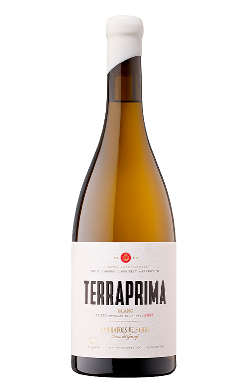 Terraprima Blanco se elabora a partir del coupage de las autóctonas Xarel·lo y Macabeo, ambas procedentes de cultivo ecológico. La primera es la responsable de la estructura y la segunda le aporta profundidad, lo que sumado a sus notas aromáticas de fruta blanca fresca y flores hacen de él un vino muy a tener en cuenta. Toda la mineralidad del macizo del Garraf en una botella.