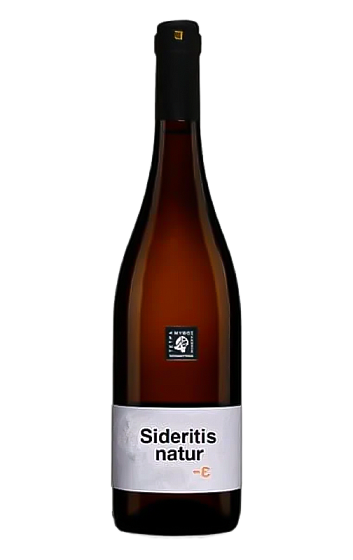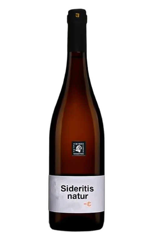 Sideritis Nature 2024 es un blanco natural elaborado con la rara uva autóctona Sideritis mediante fermentación con levaduras indígenas y mínima intervención. Su perfil aromático es fresco y expresivo, con notas de cítricos, pera y matices herbales como laurel y tomillo. En boca sorprende por su vivacidad, acidez brillante y sutil toque salino que refleja su origen mediterráneo.