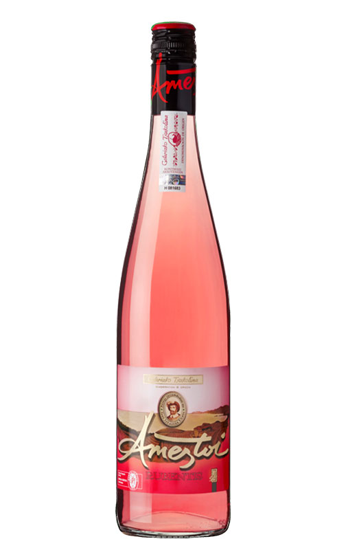 Aunque su presencia todavía es minoritaria, cada día podemos encontrar más bodegas de txakoli que se animan a elaborar rosados. Ameztoi se sirve de las variedades locales Hondarrabi zuri y Hondarrabi beltza para crear este vino tan moderno como sorprendente.