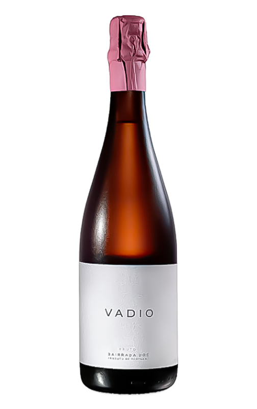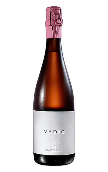Vadio Espumante Brut Rosé se elabora a partir de la variedad Baga vendimiada temprano para preservar la acidez. Prensado en racimos enteros, fermenta en acero y barrica usada y realiza la segunda fermentación en botella, con 18 meses de crianza sobre lías, dando lugar a un espumoso fino y preciso.