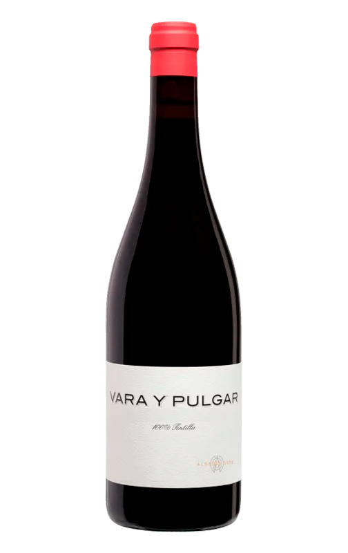 The red 2022 Vara y Pulgar 100% Tintilla is mostly from purchased grapes from different pagos with 30% from their own vines, the only ones certified organic, in Añina. It fermented in concrete and stainless steel with indigenous yeasts and some full clusters, then it was foot trodden and had a short maceration. It matured for a short time in concrete and oak vat and then in 228- and some 500-liter barrels to complete 18 months. It has some meaty aromas, smoky and spicy, with violets and bacon, hints of anchovies, reminiscent of a Northern Rhône Syrah, with a hint of leather. It's tasty, chalky and salty, these red Atlantic wines can go with fish, with a medium-bodied palate, with marked dryness. It has 13% alcohol and good balance. It was bottled in April 2024, when 24,000 bottles were filled. I tasted the 2016, and it was perfect for current drinking and very nice. (Luis Gutiérrez)