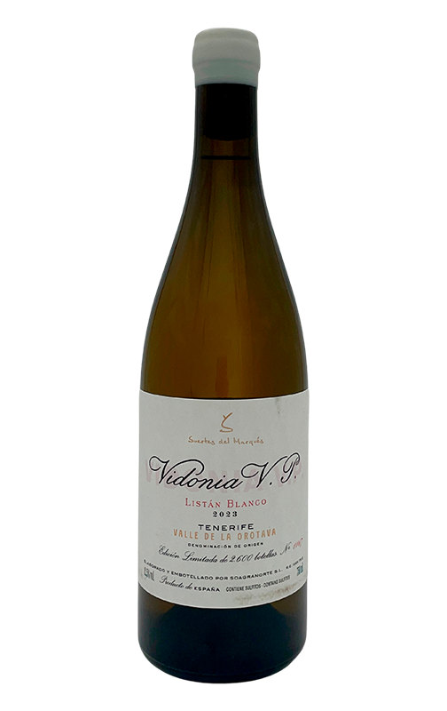 Con el nombre de Vidonia eran conocidos en el siglo XVII los vinos de Tenerife elaborados en el norte de la isla y producidos con variedades blancas minoritarias. Las mejores parcelas de Listán blanco del Paraje Las Suertes son la base de este blanco, el más complejo, profundo y elegante de la bodega. Increíble finura. Se trata de una cuvée de vinificaciones por separado según los tipos de suelo.